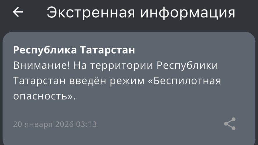Режим беспилотной опасности вновь введен в Татарстане. Сообщение от МЧС России поступило в три часа ночи.
