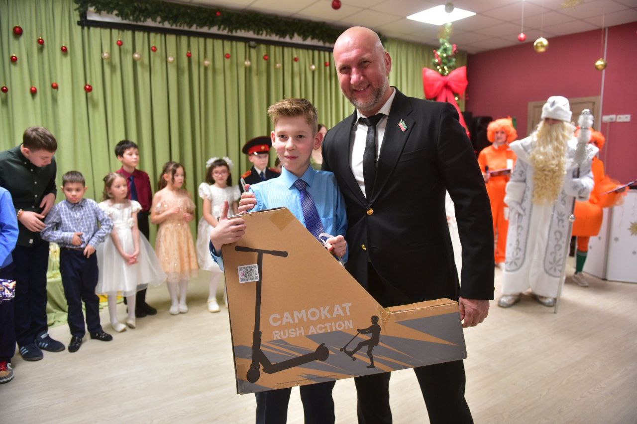Николаю Атласову досталось пожелание Кирилла Бычкова, воспитанника детского приюта «Асылташ». Мальчик мечтал о собственном самокате, и депутат оперативно исполнил это желание, вручив ребенку долгожданный подарок.