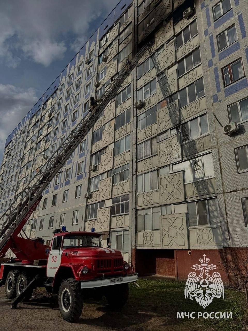 Напомним, квартира загорелась в доме №9 на улице Баки Урманче. Из окон валил густой дым, а горение закоптило стену здания.