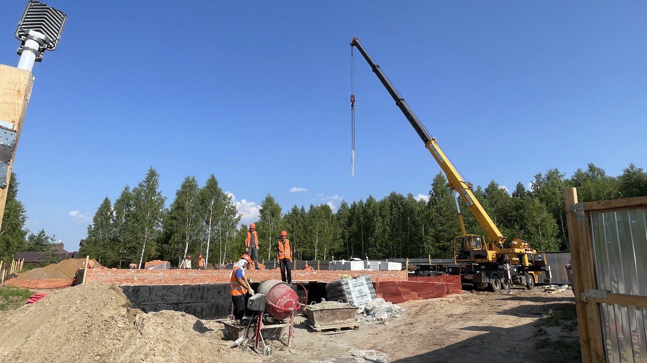 Сейчас строители уже начали возводить стены первого этажа.
