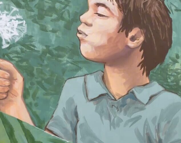 Летний рисунок он нанес впервые в 2023 году, но со временем картина потеряла свою яркость и красочность. Теперь же девочка с книжкой и мальчик с одуванчиком снова появились на стенах столицы Татарстана.