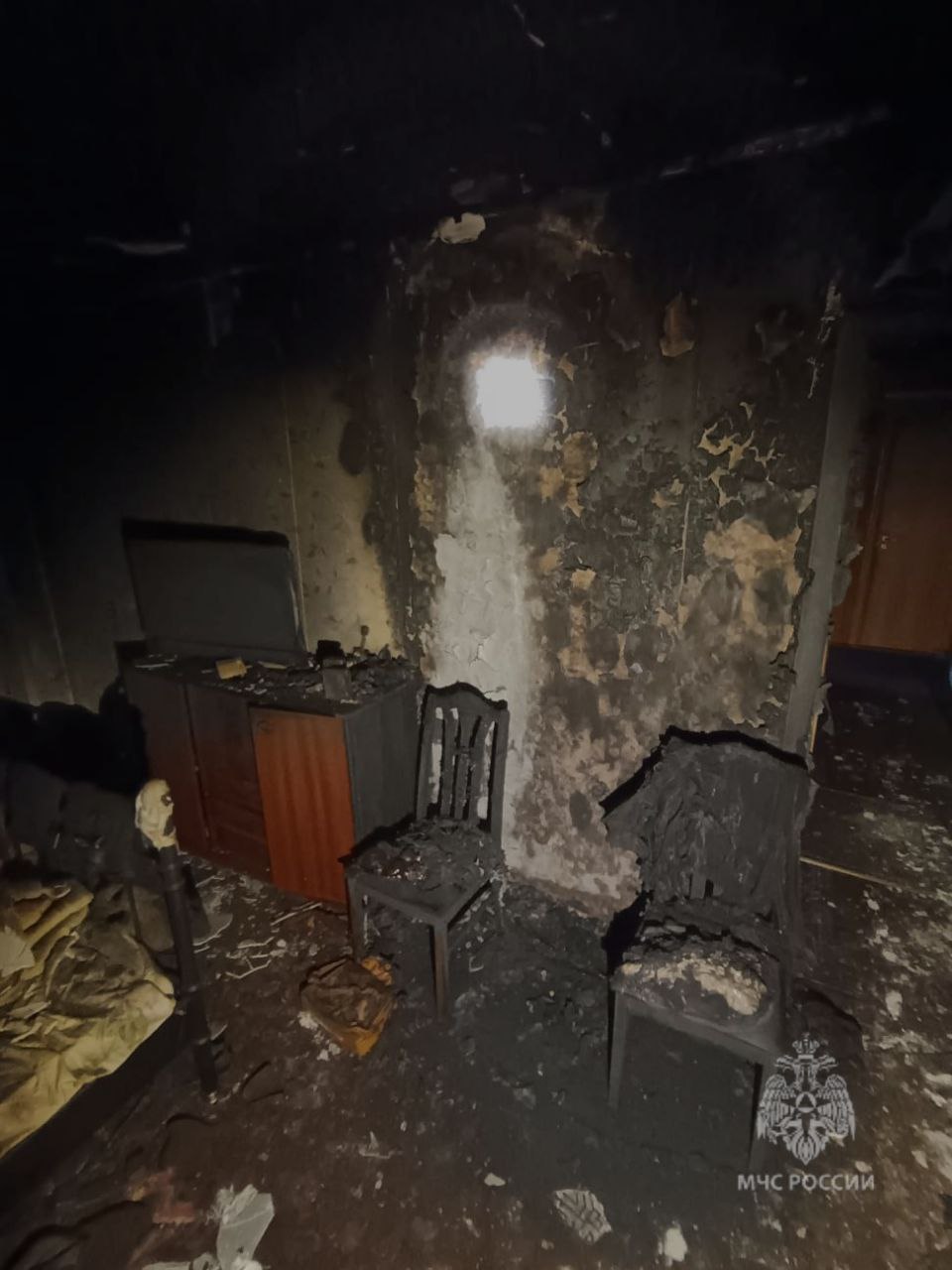 Когда прибыли пожарные, огонь уже потух сам. Возгорание произошло в спальне двухкомнатной квартиры на первом этаже девятиэтажки. Пламя погасло из-за того, что в помещении с пластиковыми окнами закончился кислород. Тело погибшего нашли в другой комнате.