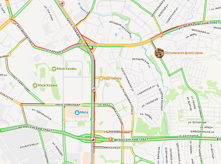 На проспекте Победы в Казани из-за ДТП собралась большая пробка. Об этом следует из данных сервиса «Яндекс Карты».