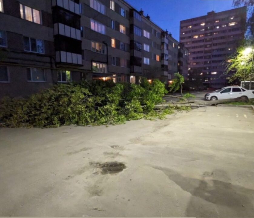 В Казани на улице Гарифьянова, 11 из-за сильного ветра рухнуло дерево. Об этом сообщают очевидцы в социальных сетях.