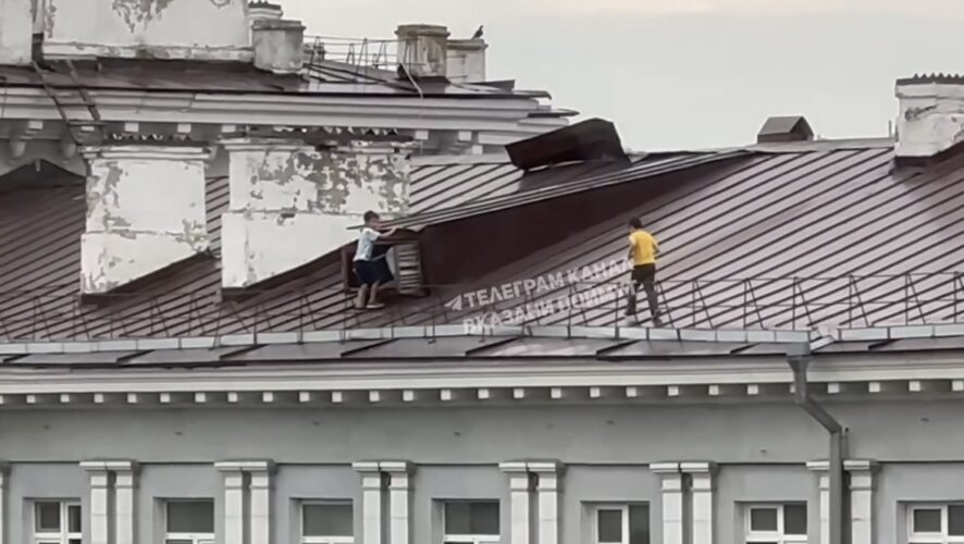 Опасные развлечения: в центре Казани по крышам домов бегают дети
