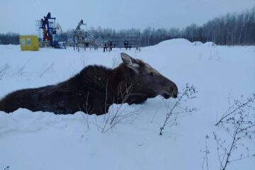 В социальных сетях опубликовали видео с очередным лосем, выскочившим на дорогу перед автомобилями.
