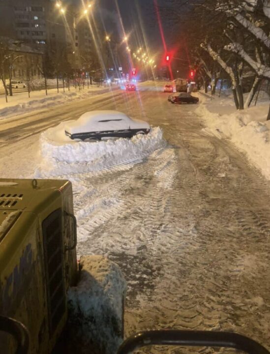Например, целый остров снега вместе с автомобилем дорожным службам пришлось оставить на улице Губкина в Казани. Засыпанный снегом автомобиль, стоящий посреди проезжей части, и гора снега так и останутся не почищенными. Такие ситуации часто мешают работе техники и замедляют уборку.