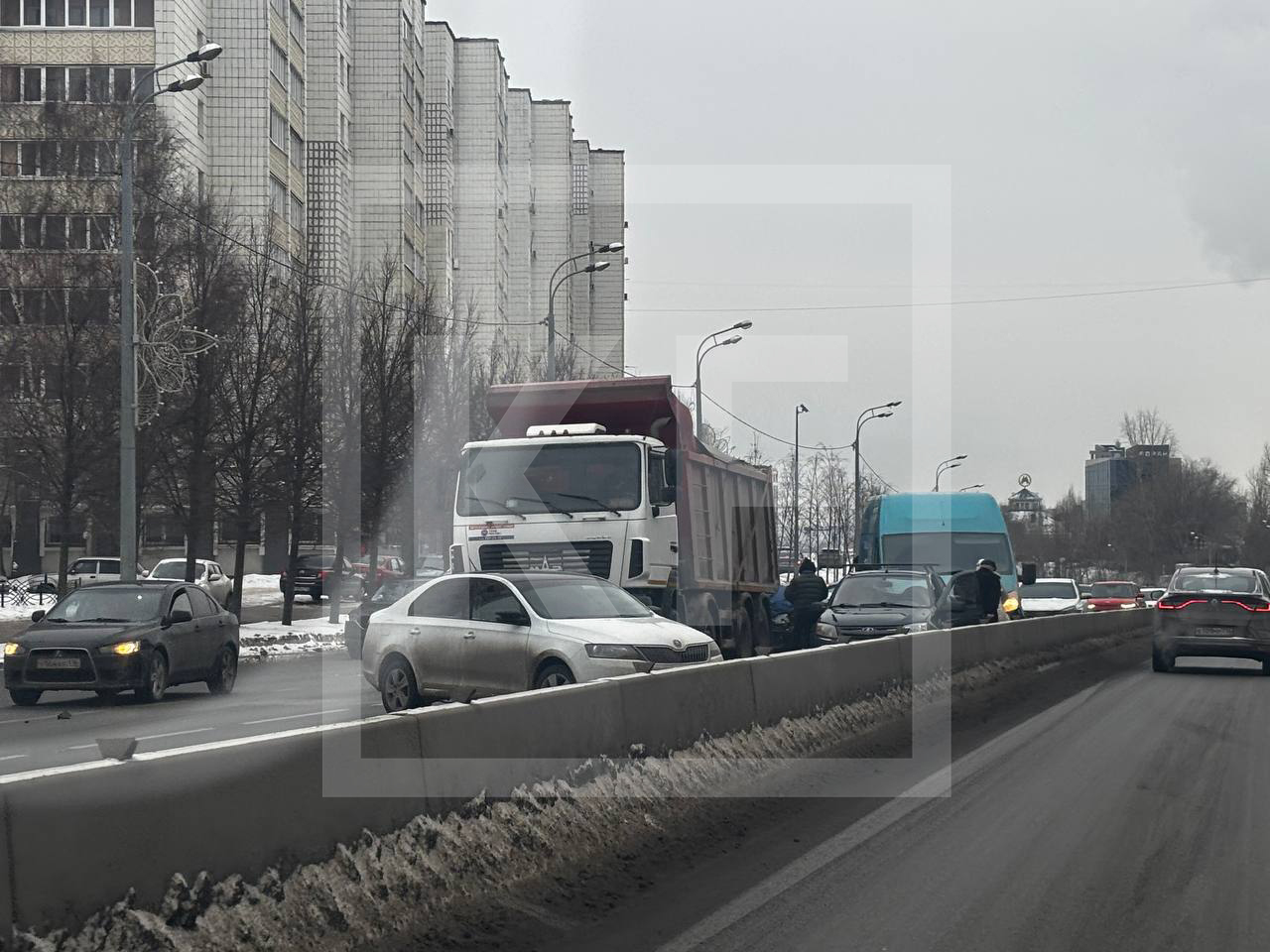В Казани на пересечении улиц Вишневского и Калинина произошла серьезная авария с участием не менее семи транспортных средств, среди которых «Лада», Skoda, Ford, грузовик и еще две легковушки.