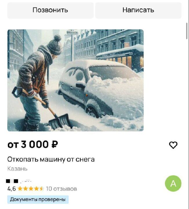 После страшного снегопада, который парализовал республику в минувшие выходные, предприимчивые казанцы и жители Татарстана стали делать новый бизнес. Сайты бесплатных объявлений пестрят предложениями по помощи автовладельцам. Если раньше на онлайн-площадках можно было найти тех, кто прикурит машину в мороз, то теперь одной из самых популярных услуг стало — откопаю автомобиль от снега.