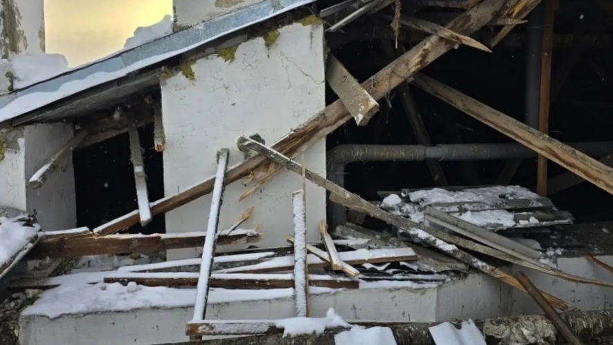 Элементы стропильной системы (несущий каркас скатной крыши) не были гнилыми, а высота снежного покрова на крыше была практически полметра. Обрушение не обошлось без последствий: пострадало отопление, и затопило квартиры с четвертого до второго этажа. Утром ремонт по восстановлению трубопровода закончили, и к жителям дома снова вернулось тепло. Однако газ всем вернут после проверки газового оборудования.