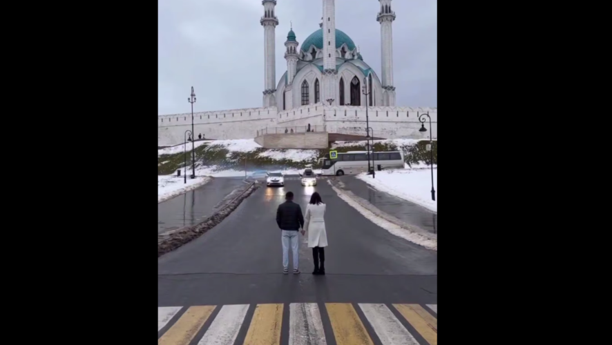 Судя по видео, счастливый отец отвернулся от двух машин, в которых сидели два человека с разными сигнальными огнями. Он стоял спиной к ним, и вперёд выехала машина с розовым сигнальным огнём. Так папа узнал, что у него будет дочка. Особенно красиво то, что пол своего ребёнка он узнал под стенами Казанского Кремля.