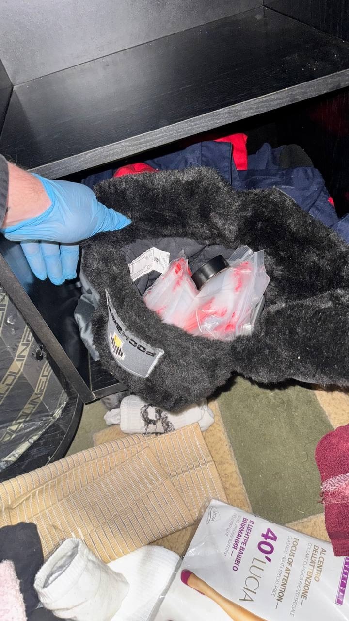 После полицейские поехали туда, где проживал задержанный. В тарелке на кухне, под телевизором, в тканевом чехле и внутри шапки также нашли запрещенку. Это был мефедрон и каннабис. Вес изъятого дома перевалил за 70 г. Кроме того, оперативники обнаружили места, где фигурант оборудовал закладки. Там нашли 18 свертков с 16,8 г каннабиса.