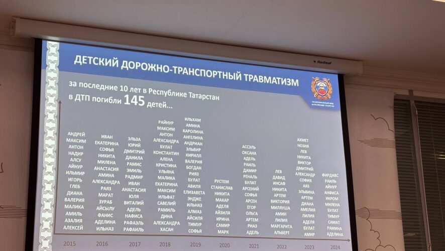В МВД по РТ показали список имён детей, которые погибли на дорогах республики за последние десять лет. Его озвучили на брифинге ведомства, который посвящен дорожно-транспортному травматизму детей.