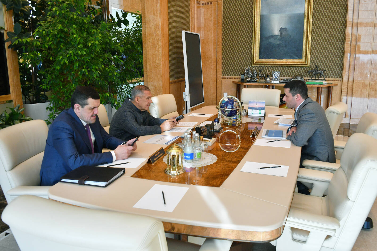 Встреча прошла в рабочем кабинете Минниханова в Доме правительства Татарстана.