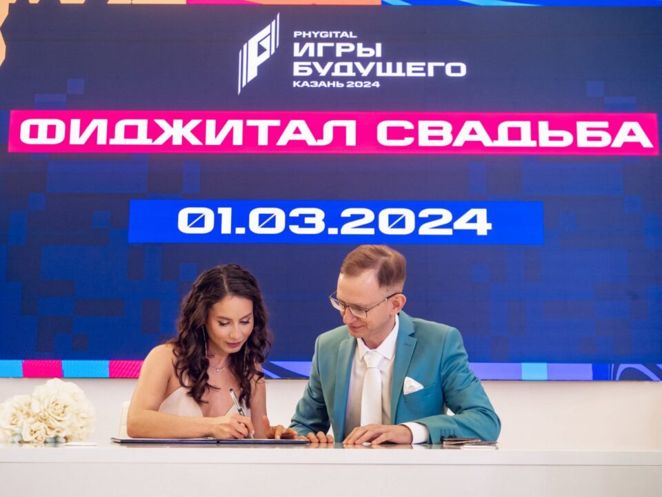 В «Казань Экспо», на малой сцене Города Игр будущего, состоялась первая фиджитал-свадьба. Супругами стали Егор и Елена Ореховы. Об этом сообщает телеграм-канал выставочного центра Kazan Expo.