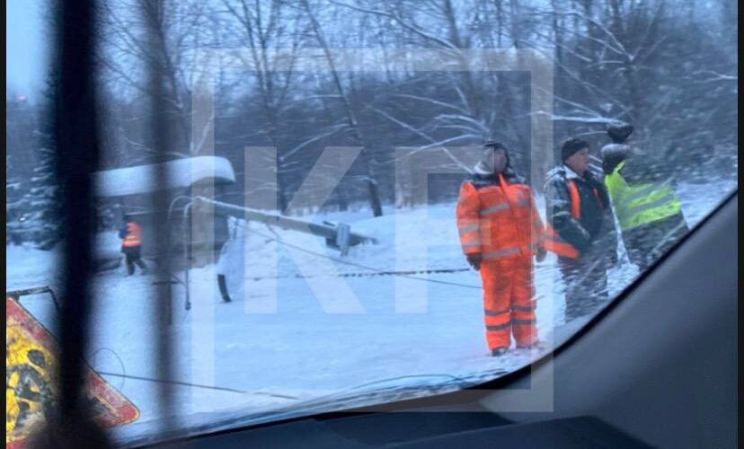 В распоряжении KazanFirst появились фото с места происшествия. На кадрах видно, что в результате падения, столб упал недалеко от остановки, едва её не задев.