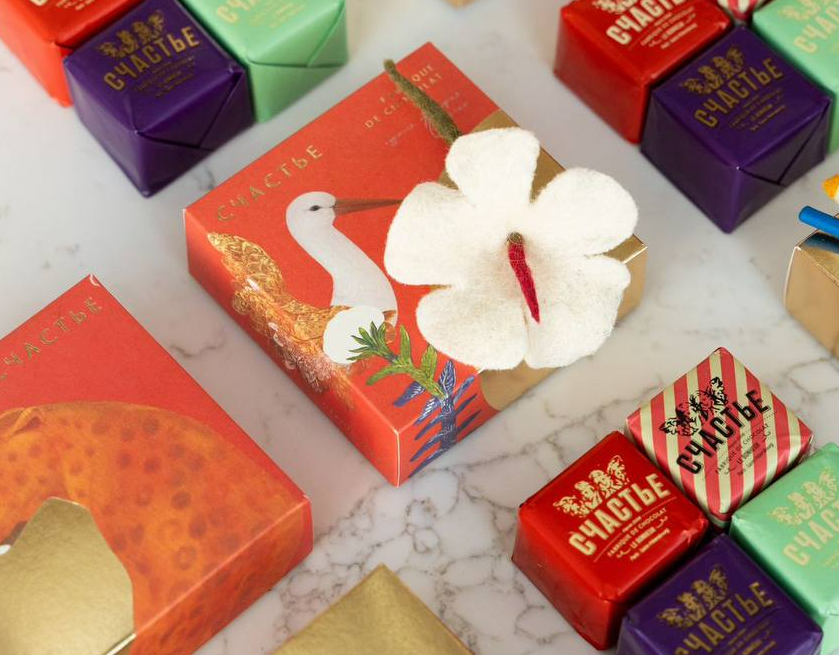 Команда ресторанов и Шоколадной фабрики «СЧАСТЬЕ «и татарская художница Альфия Саргин выпустили необычную коллекцию пралине в коробочках, украшенных символами тюркской культуры. Презентация прошла в Галерее современного искусства ГМИИ Республики Татарстан.