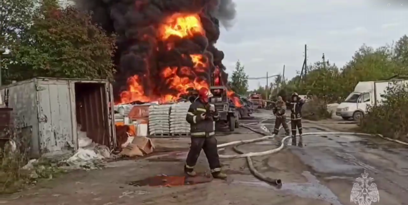 МЧС России поделилось кадрами с места пожара, пламя и столб чёрного дыма поднимаются чуть ли не до небес.