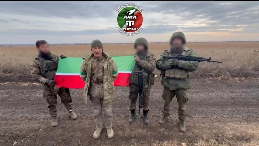 На видео пленный военный поздравляет жителей республики с праздником. Сзади него стоят бойцы из Татарстана, которые держат флаг республики.