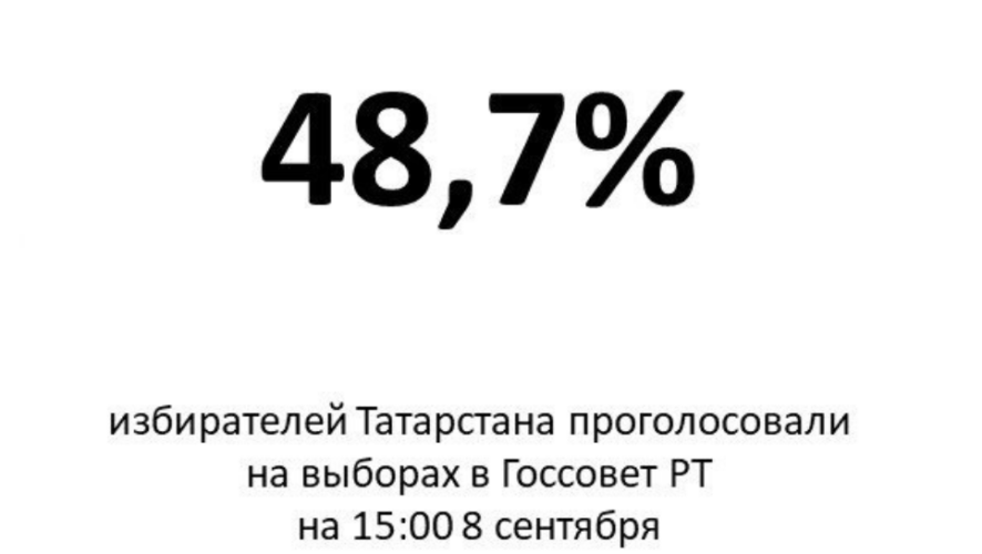 К 15:00 явка на выборы в Государственный Совет Республики Татарстан составила 48,7%. Об этом сообщает система ГАС «Выборы».
