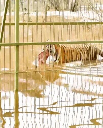 Сообщается, что коз, баранов, птиц, наоми и тигров переводят в безопасное место. На кадрах видно, что животные не могут находиться в своих клетках из-за высокого уровня воды. Руководство ожидает, что ближе к ночи ситуация ухудшиться и воды станет еще больше.