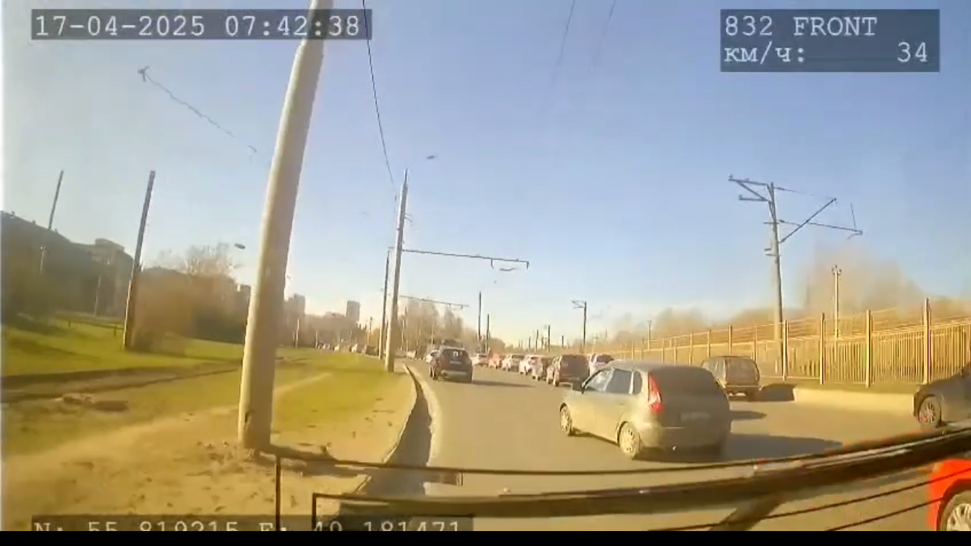 На кадрах видно, как автобус двигается с допустимой в черте города скоростью. После этого стоявшая в потоке «Лада» решила неожиданно перестроиться, из-за чего водителю пришлось затормозить во избежание ДТП. Легковушка после перестроения уехала с места происшествия.