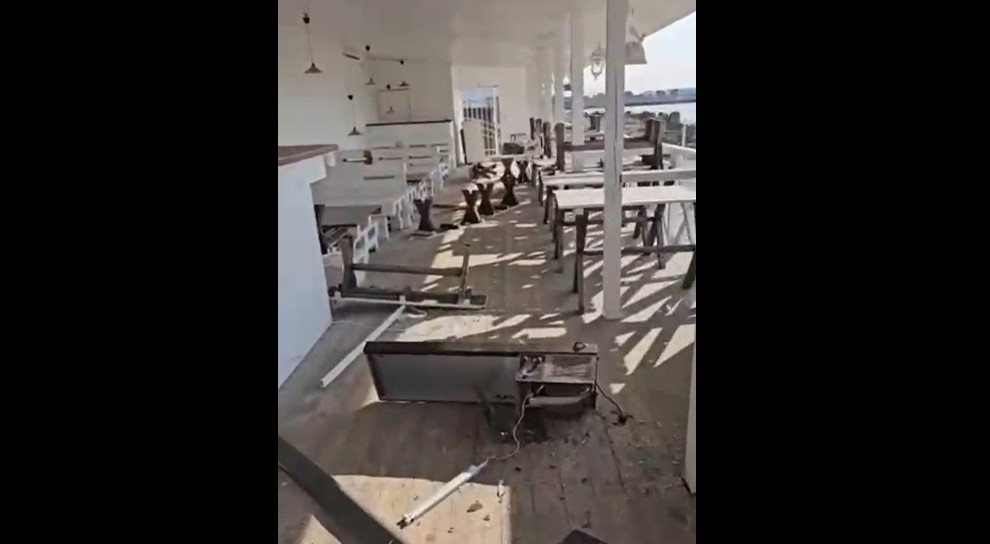 На видео запечатлели сломанные двери, ограждения, разбитые лампы и стекла в заведении.