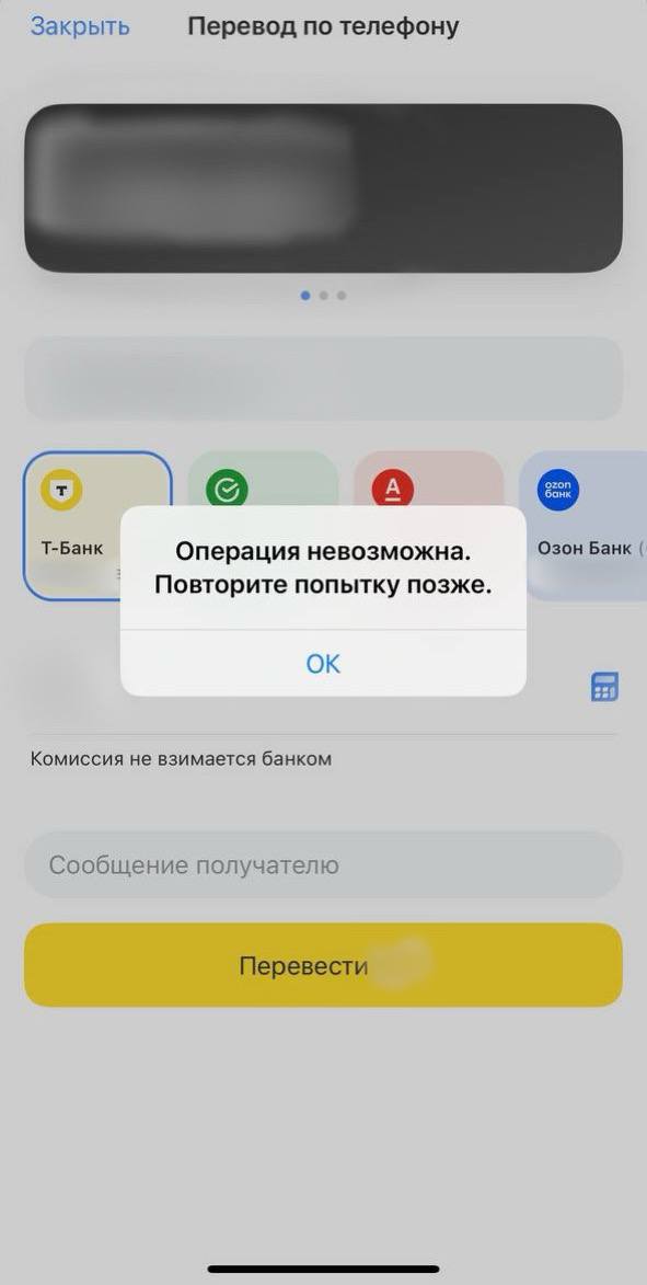 Пользователи банка не могут воспользоваться функцией перевода денег. При отправке платежа по номеру телефона или карты возникают проблемы.