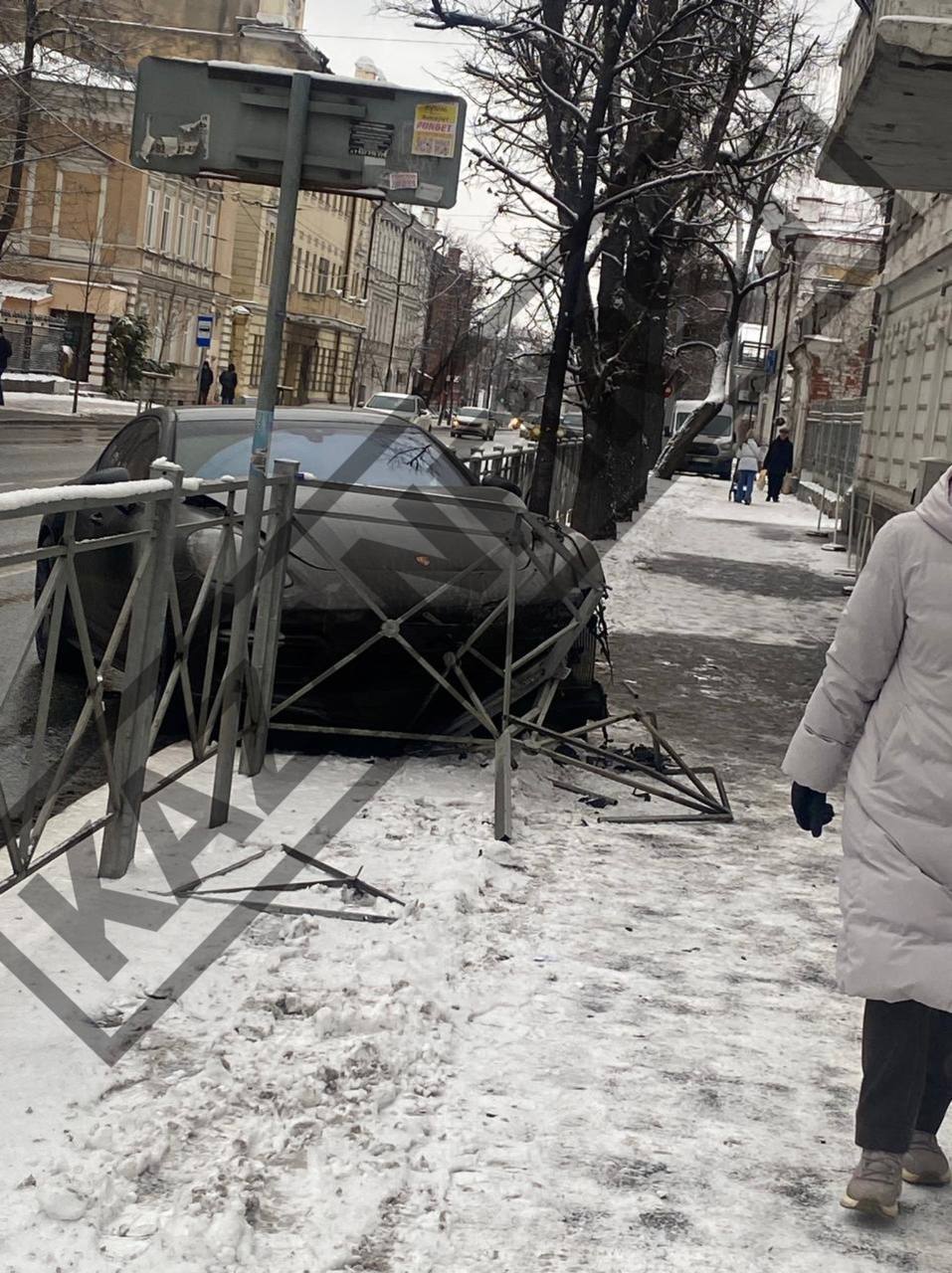 На кадрах видно, что автомобиль Porsche въехал в забор, получив значительные повреждения передней части. Капот автомобиля сильно погнут. О пострадавших в результате аварии пока не сообщается. На месте работают сотрудники Госавтоинспекции, устанавливающие обстоятельства произошедшего.