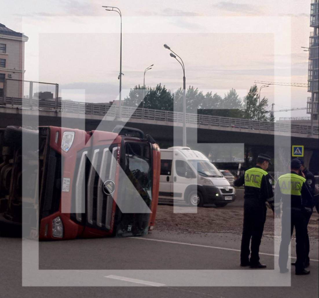Сегодня в Казани на улице Вишневского опрокинулся «КАМАЗ» с песком. На месте работают сотрудники Госавтоинспекции и медики. Обстоятельства случившегося устанавливаются. Фото с места событий KazanFirst прислали очевидцы.