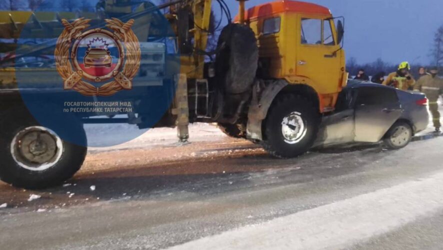 Сегодня в Пестречинском районе Татарстана водитель КАМАЗа выехал на встречную полосу и столкнулся с легковушкой. В результате аварии погиб водитель. Двое пассажиров, включая ребенка, пострадали. Кадры с места происшествия опубликовала Госавтоинспекция Татарстана.
