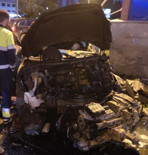 На кадрах видно, что на месте работает бригада скорой помощи и правоохранители. Судя по фото из сети, автомобиль влетел в забор возле подземного пешеходного перехода. Из-за столкновения машина превратилась в груду железа — у авто полностью смяло передний бампер. Некоторые детали автомобиля вылетели и разлетелись по проезжей части.