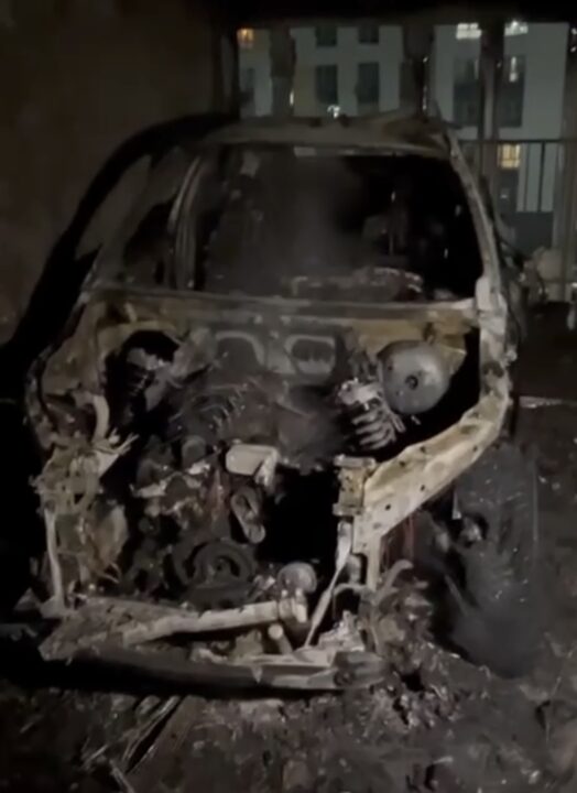 В результате огнем полностью уничтожен немецкий внедорожник, кроме того пострадал рядом припаркованный автомобиль VOYAH.