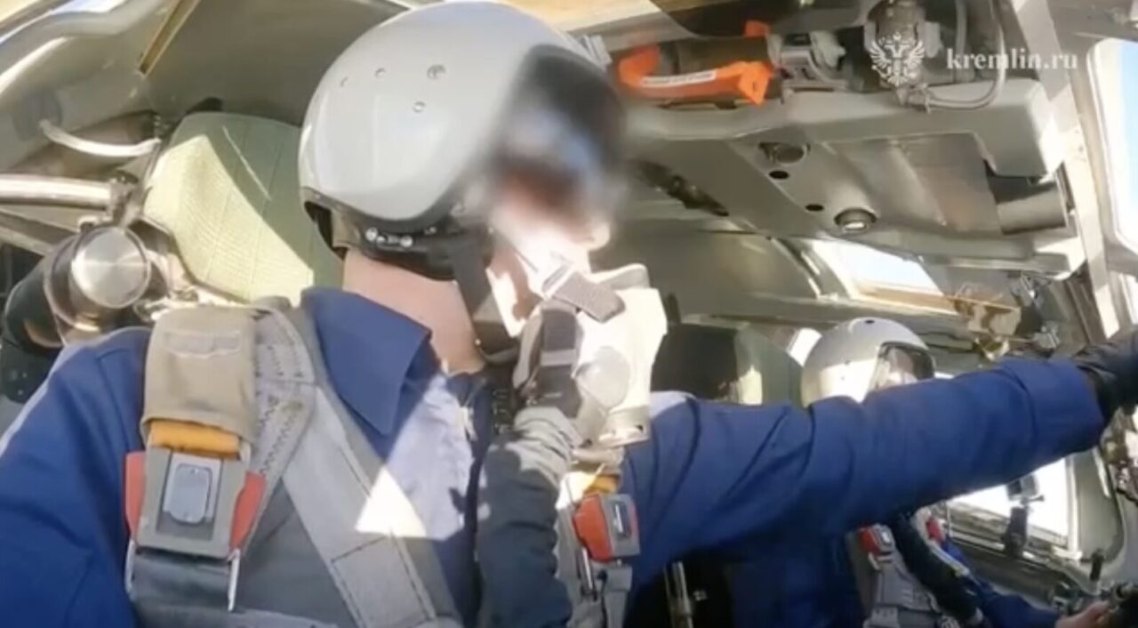 На официальном сайте Кремля появилось видео полета Президента России Владимира Путина на стратегическом бомбардировщике-ракетоносце Ту-160М. Кадры сделаны из кабины самолета.