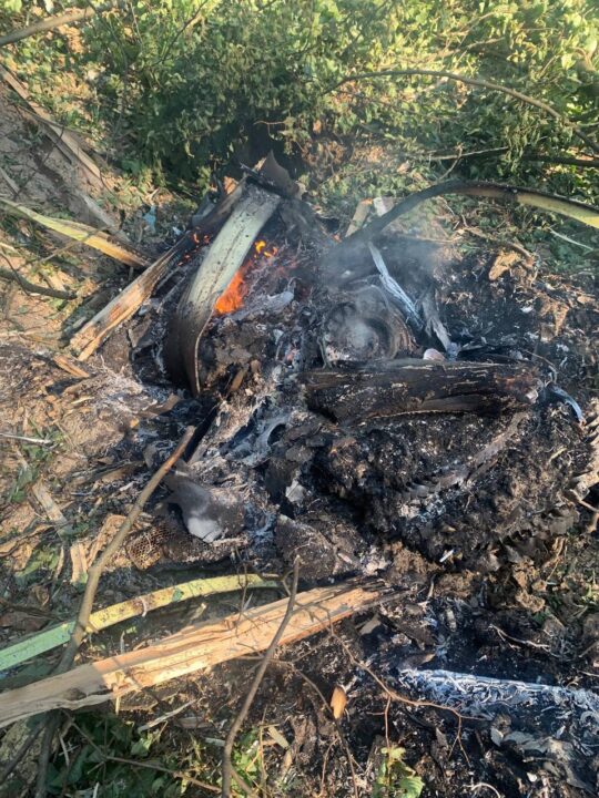 На кадрах видно части воздушного судна, разбросанные по лесу. Деревья вокруг сломаны. Всю территорию окутал дым. На месте крушения работают пожарно-спасательные группы.
