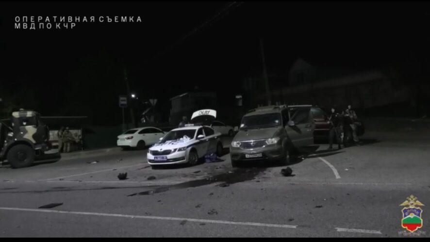 В Карачаево-Черкесии произошло вооруженное нападение на пост ДПС. Видео с места происшествия опубликовало МВД региона в своем телеграм-канале.