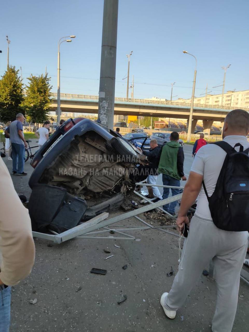 Сегодня в Казани автомобиль Honda врезался в столб на проспекте Победы. Появилось видео с места страшной аварии.