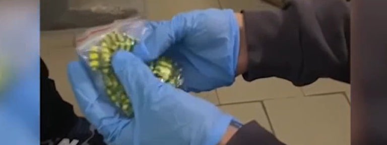 Так, при досмотре задержанного 46-летнего наркокурьера у него изъяли 28 свертков с синтетическим наркотиком «метилэфедрон» общей массой более 27 грамм. На кадрах видно, что свертки были завернутые в яркие упаковки. А также в пачке сигарет находился бумажный сверток с «гашишем».