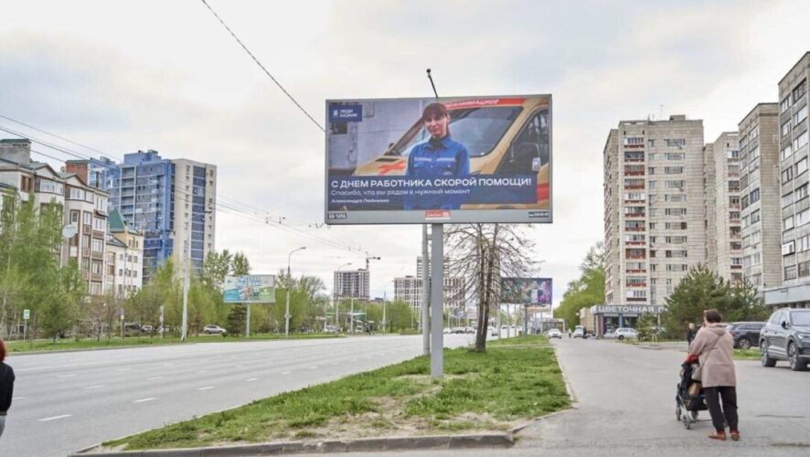 Сегодня в России отмечается День работника скорой медицинской помощи, сообщает мэрия Казани. По всему городу установили билборды с поздравлениями.