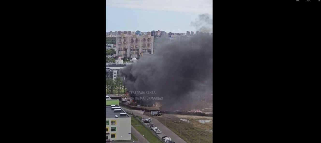На видео попал пожар на стройке на выезде из Казани. Его засняли очевидцы происшествия, выложив видео в соцсети.