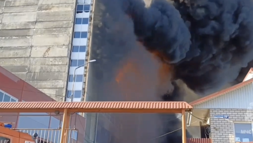 На месте пожара работают 37 специалистов и 10 единиц техники. Привлечен пожарный поезд. Огонь распространяется по 6-этажному зданию. На данный момент развернуты 3 боевых участка тушения.