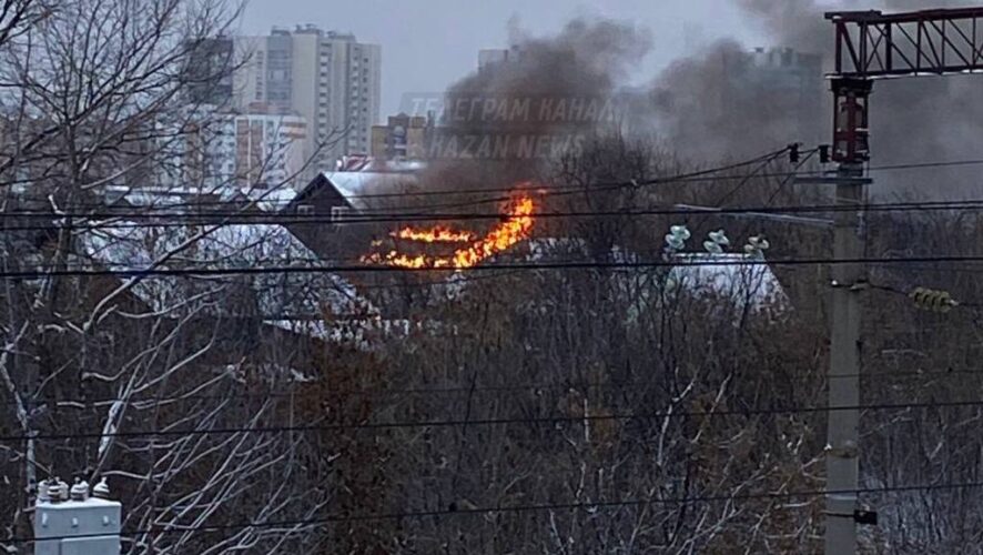 Пожар возник рядом с железнодорожной станцией Ометьево в Казани