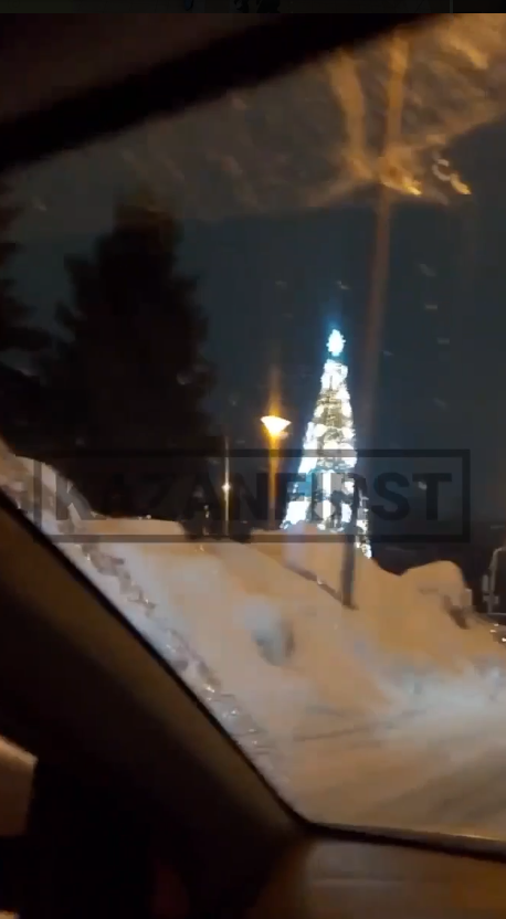 На улице Тинчурина в Казани продолжает стоять новогодняя елка. По вечерам на ней все еще зажигают огни.