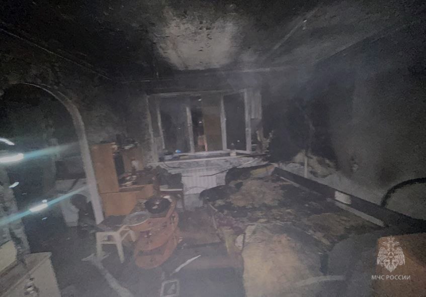 В результате возгорания, площадь которого составила 6 квадратных метров, пострадали диван и вещи, а стены и потолок комнаты покрылись копотью. Погибших нет.