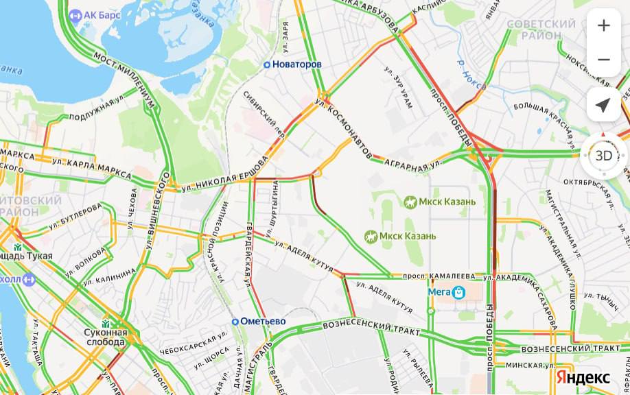 Судя по данным навигаторов, пробка начинается от «Меги» и заканчивается на пересечении проспекта Победы с улицей Губкина. Вероятно, это произошло из-за ДТП на Проспекте Победы.