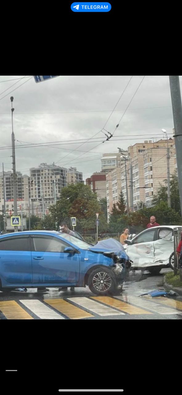 На кадрах видно, как у синего автомобиля смят капот. У белой иномарки полностью смята правая часть. О пострадавших информации нет. Обстоятельства случившегося устанавливаются.