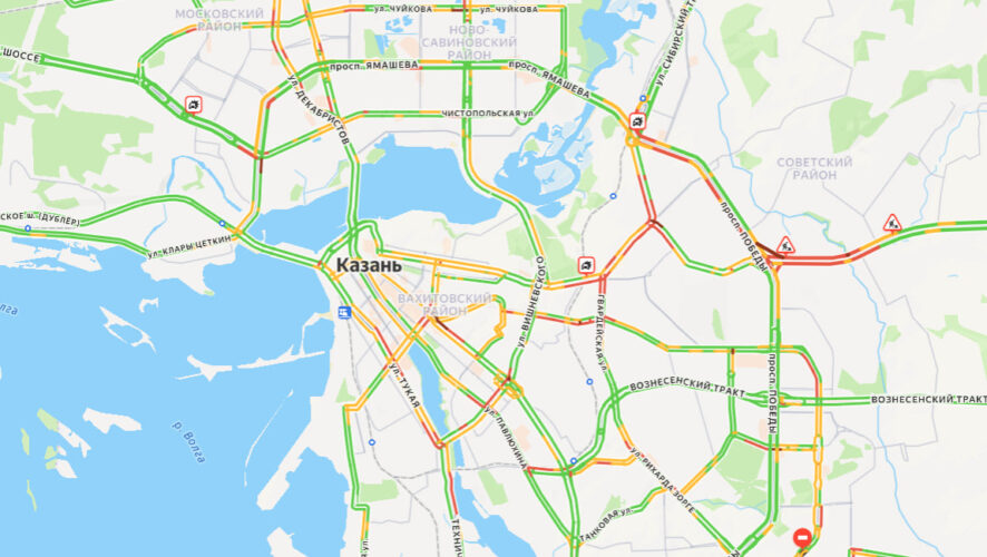 Согласно данным сервиса, самые большие заторы образовались в Вахитовском, Советском и Авиастроительном районах. В Приволжском, Ново-Савиновском, Кировском и Московском районах ситуация на дорогах проще – красным «окрашены» лишь некоторые улицы.
