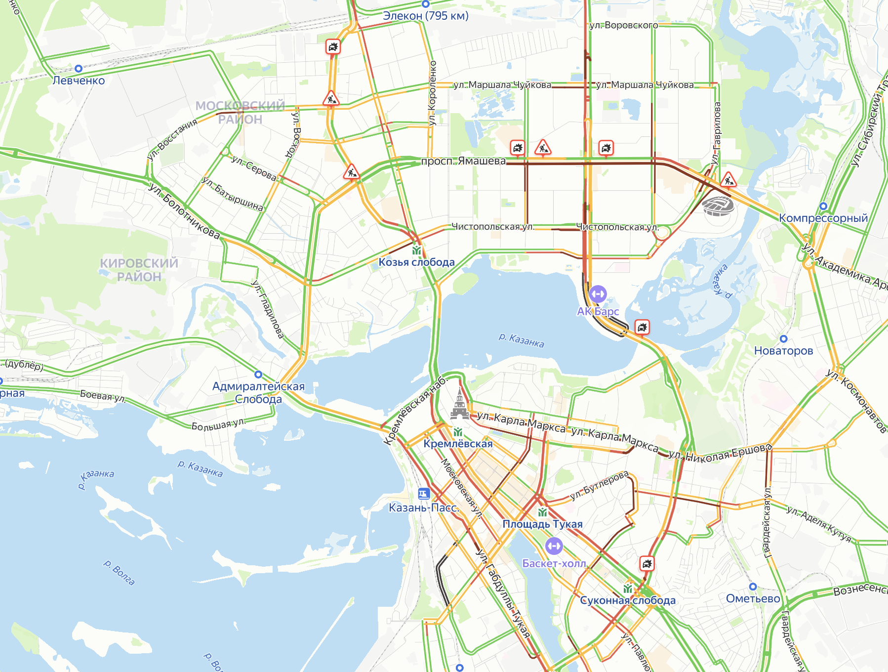 Помимо этого, сильные заторы образовались и в Ново-Савиновском районе. Водителям тяжело проехать по проспекту Ямашева, улице Мусина, улица Фатыха Амирхана, улица Чистопольская.