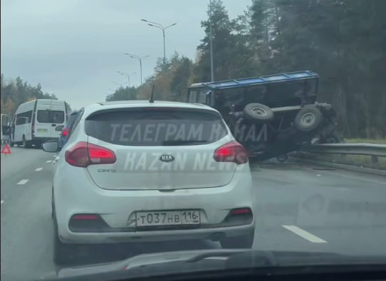 Свидетели также публикуют в соцсетях кадры с места происшествия. На них видно, что один из автомобилей, вероятно, трактор, врезался в барьерное ограждение. Автобус, в свою очередь, остановился в нескольких метрах от него.