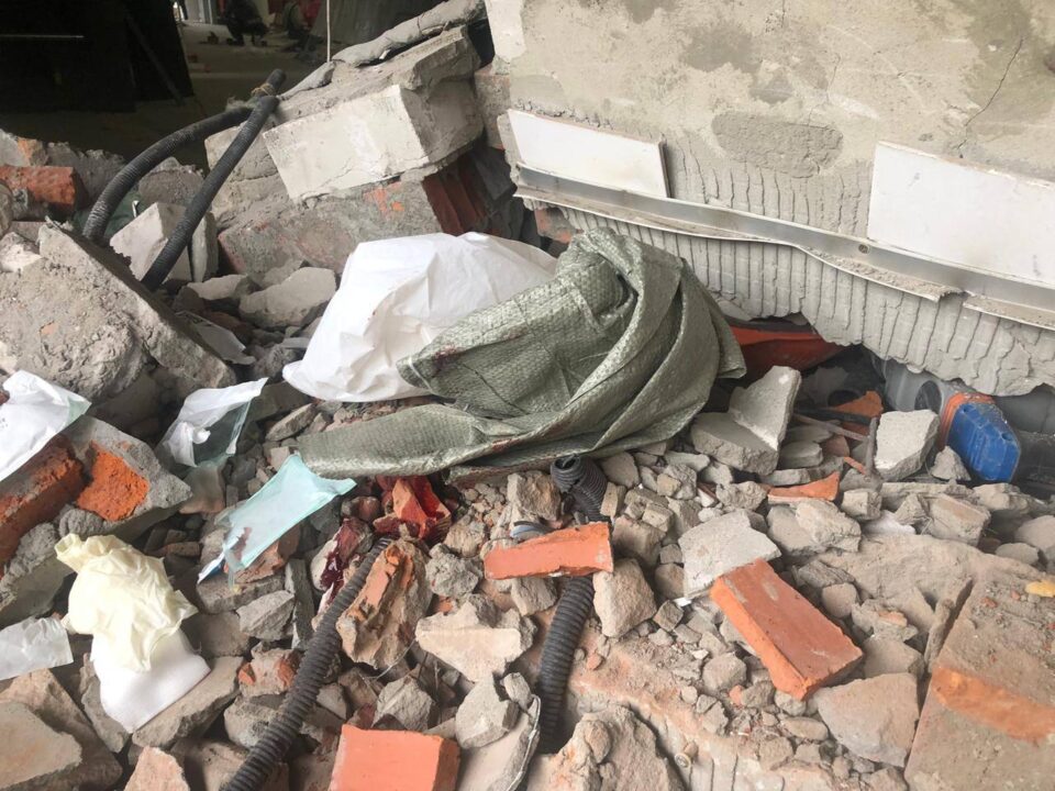 Ранее сообщалось об инциденте во время ремонтных работ в «Пирамиде». Кирпичная стена рухнула на строителя, его увезли на скорой.